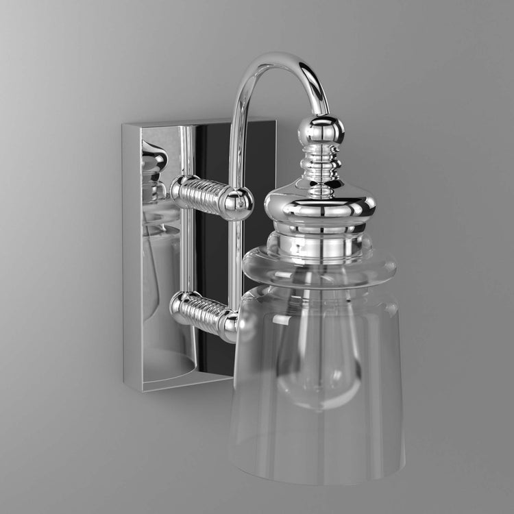 From the Lighting Pulse design firm, the "Castara" collection bathroom vanity features a classic transitional clean design with clear glassware and a polished nickel frame. Also available with a black frame.