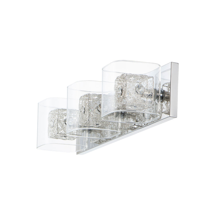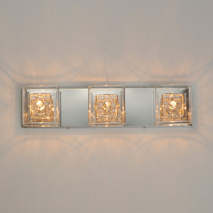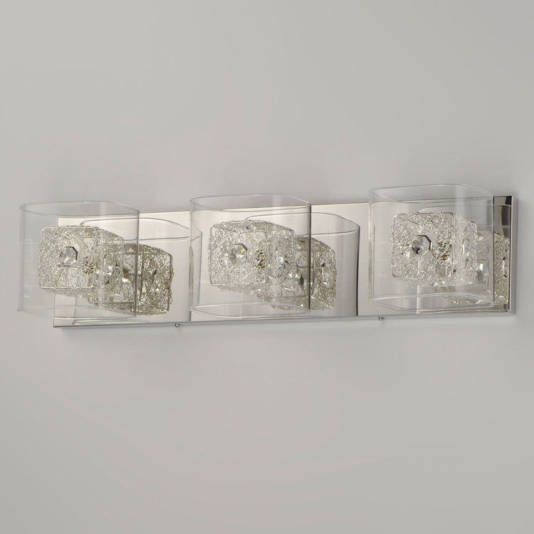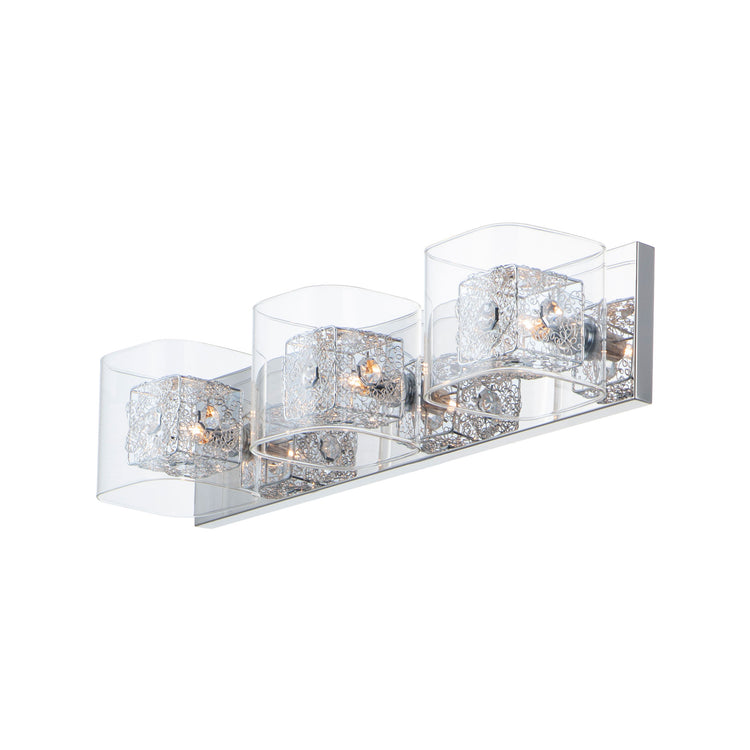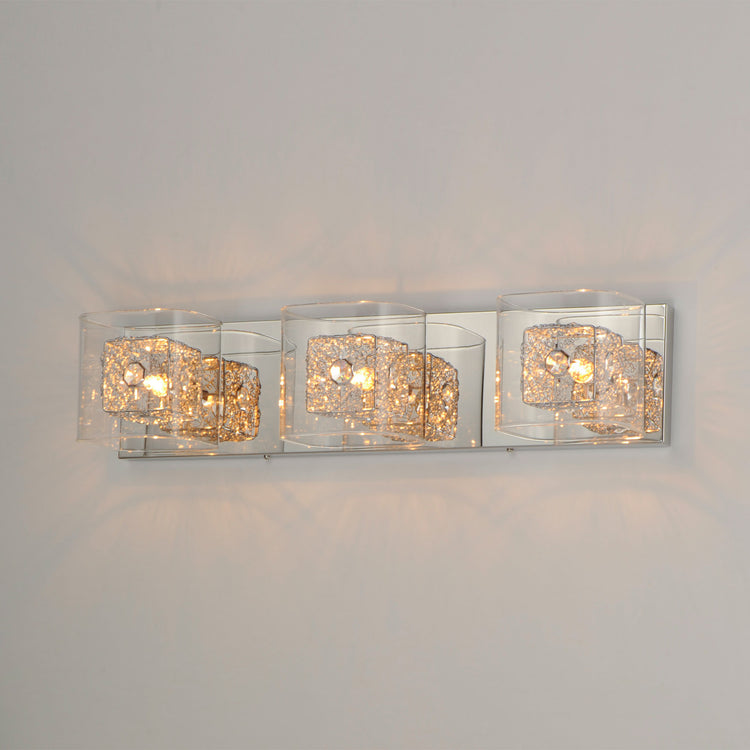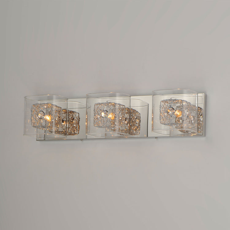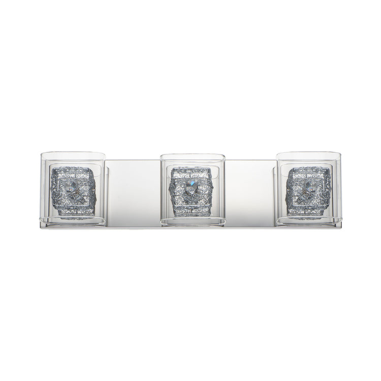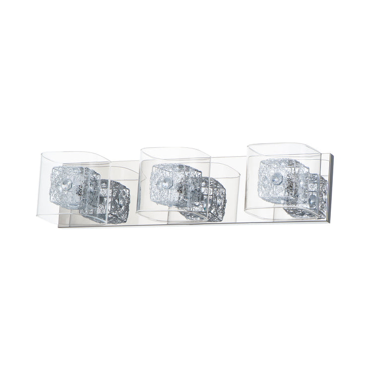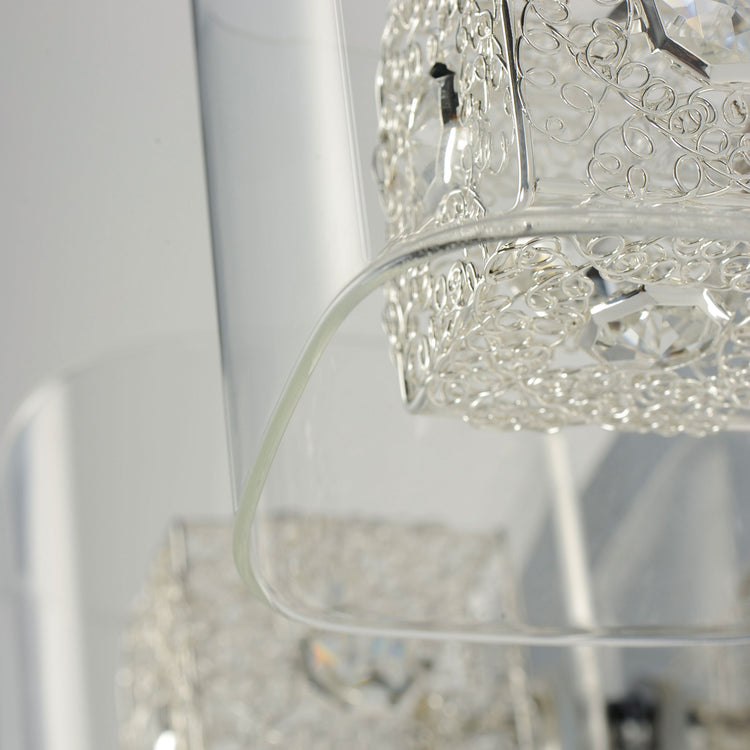 With the illusion of floating on air, the Gem Collection offers a touch of mystery to any room. Intertwined metal cubes are encased by clear crystal cubes, allowing xenon light to shine from within and bursting out through the embellished crystal. Inner metal cubes come in two options, Polished Chrome (PC) and Silver (SV).