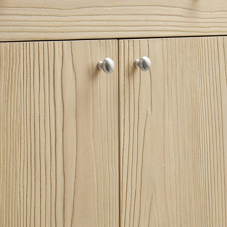 The sand-blasted finish on natural Ash gives textural and visual definition to the wood grain, truly bringing this piece to life. Featuring an integrated USB/120V power unit and smooth radius edges, the Gracyn is complemented by elegant Satin Nickel hardware. The two-door cabinet features ample storage with one exterior drawer, interior shelving, and one internal drawer.