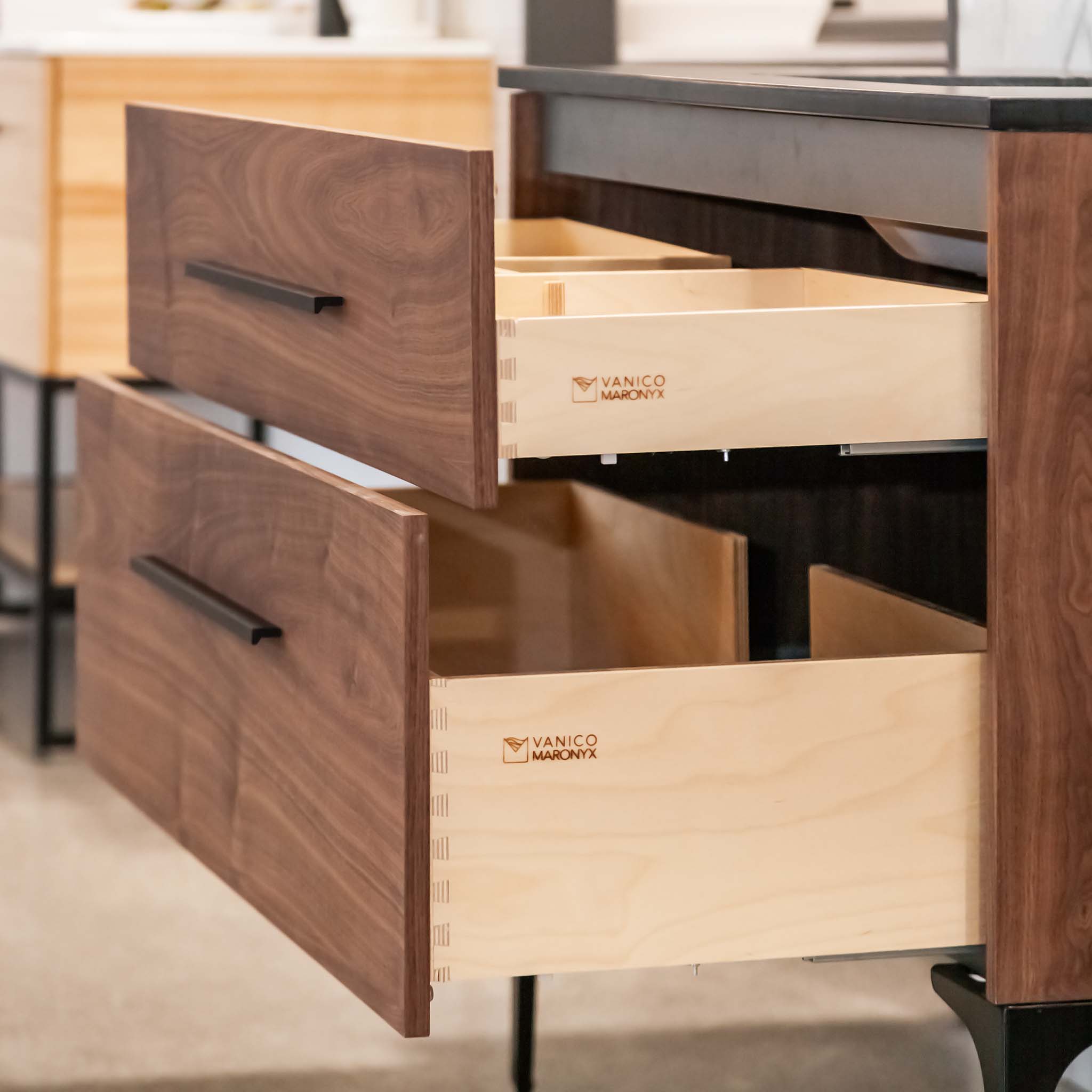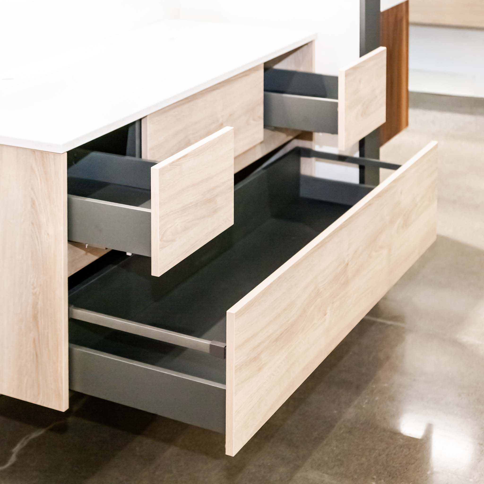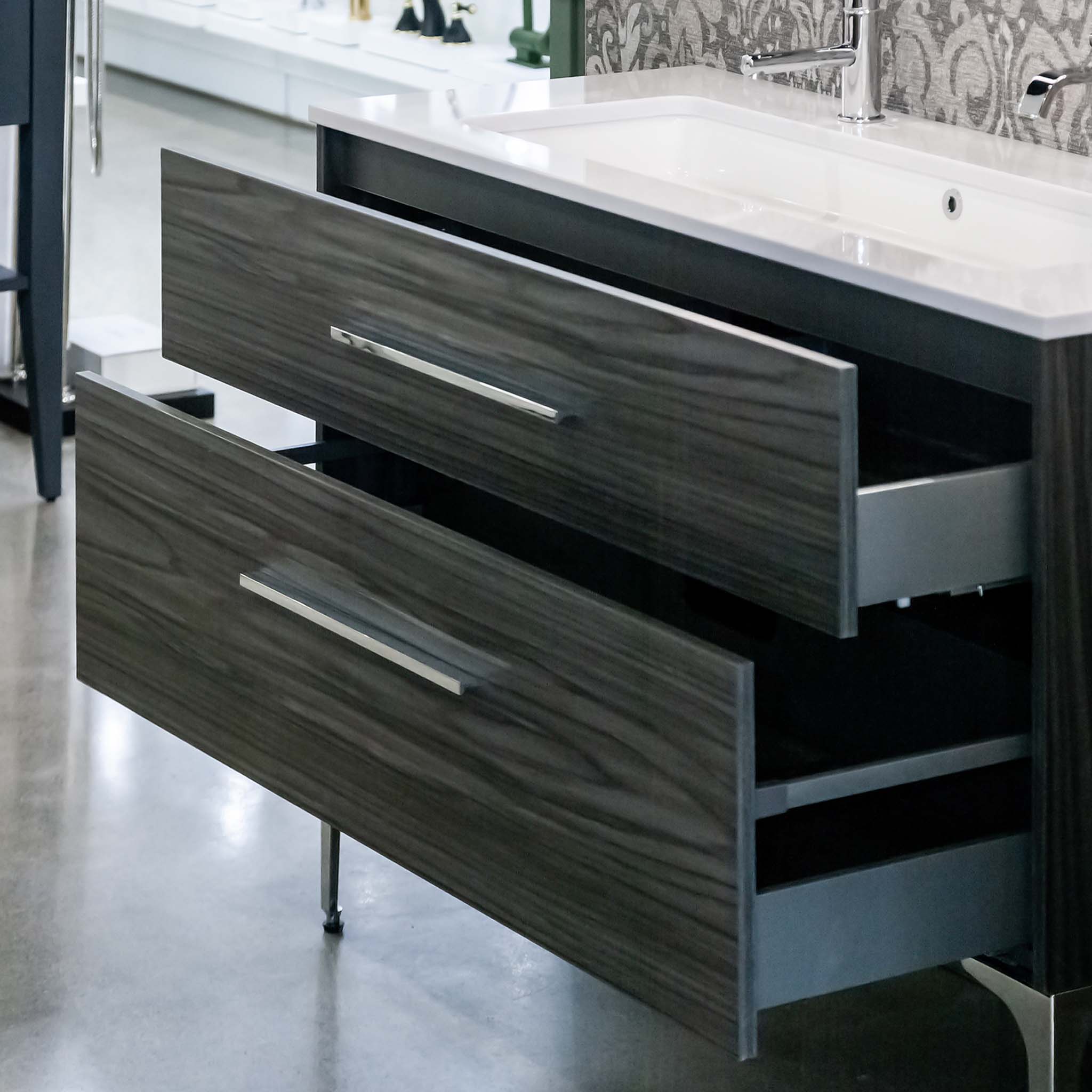 The Sweet Home bathroom vanity is available with or without profiled handle.